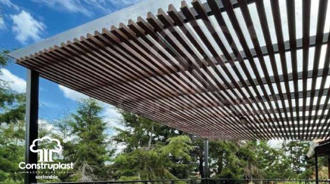 El listón en madera plástica WPC es perfecto para pérgolas. Su acabado coextruido repele en mayor grado la humedad, es fácil de mantener y resistente a la intemperie, proporcionando funcionalidad y belleza en espacios exteriores.